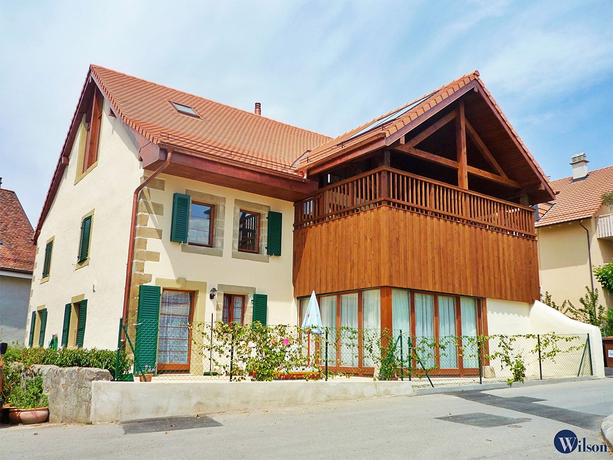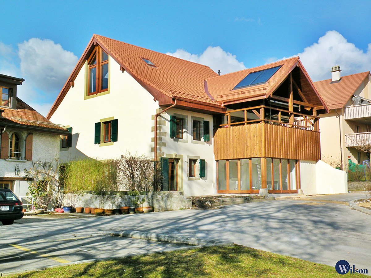 Un appartement de 3 ½ pièces avec jardin privatif se trouve au rez-de-chaussée et, dans les étages supérieurs, un duplex 5 ½ pièces avec terrasse couverte bénéficiant d’une splendide vue sur le lac et les Alpes, d’une surface de 200 m2.